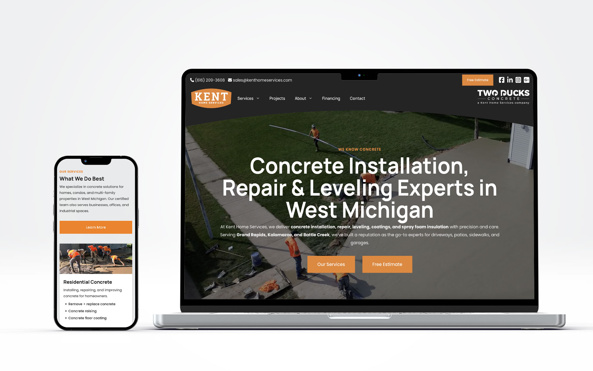 Kent Home Services is a well-established concrete contractor serving West Michigan, with decades of experience and more than 10,000 completed projects. Despite a strong local reputation and excellent reviews, the company’s website relied heavily on branded search traffic and was not positioned to compete consistently in modern search environments.